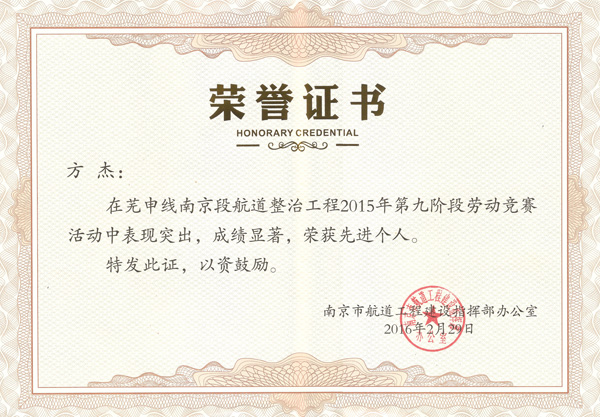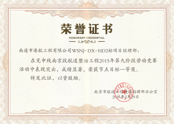 2016年2月29日下午,在芜申线南京段航道整治工程现场指挥部召开了芜申线南京段航道整治工程2015年第九阶段劳动竞赛总结表彰暨第十阶段劳动竞赛动员会。