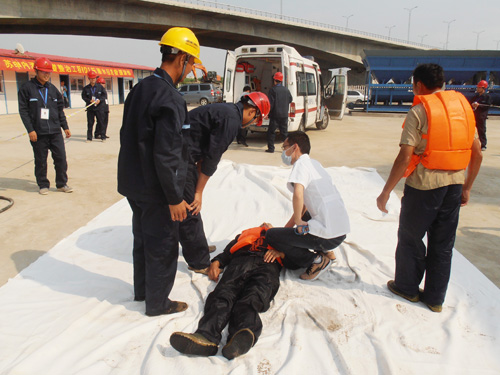 苏申内港线SSNG-HD1标开展“落水事故”应急救援演练