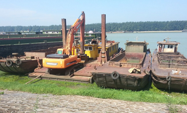在京杭运河江苏省交通运输厅苏北航务管理处、邳州航道管理站、皂河船闸管理所的关心支持下,京杭运河皂河船闸上游锚地疏浚工程顺利开工。目前2艘3m3的抓斗式挖泥船及配套泥驳已正常施工,后期根据施工进展情况增加相应船机设备。